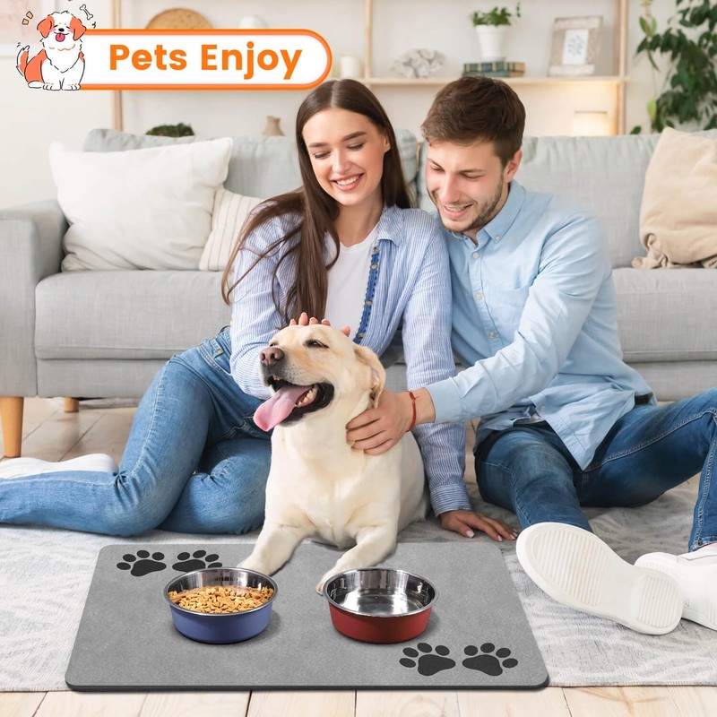 • 【Strong Absorbent & Keep Dry】Our dog food mat boasts exceptional absorbency, quickly soaking up any spilled water & milk and leaving no traces behind. It effectively prevents wet paws and keeps your pet's eating area clean and dry.