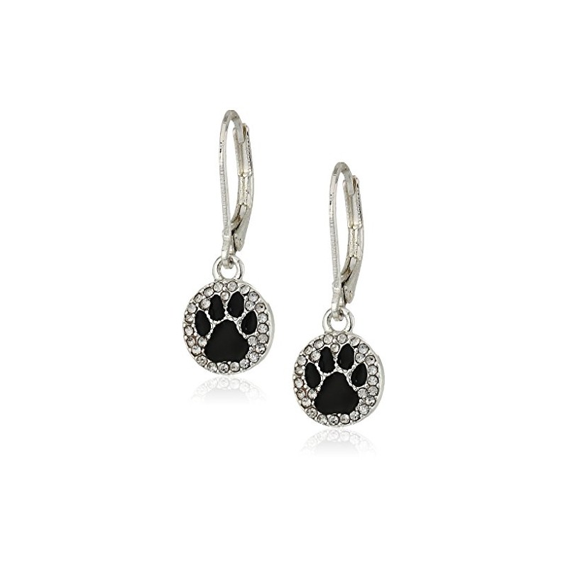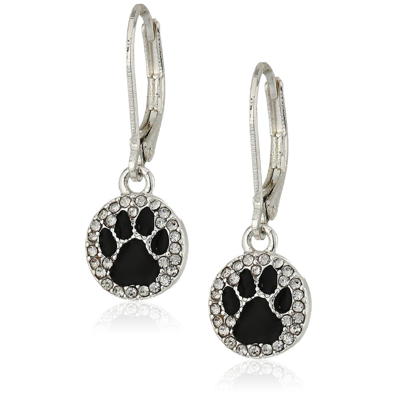 - Silver Dog Paw Earrings: These adorable drop earrings are made from silver-tone metal and feature sparkling crystals and a jet black paw print