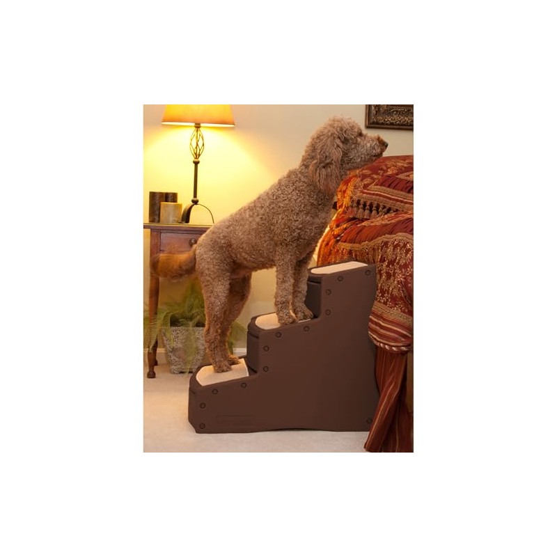 Pet Gear Easy Step III Extra Wide Pet Stairs, 3 Step for Dogs/Cats up to 200 pounds, Removable/Washable Carpet, Easy Assembly (No Tools Required) Espresso