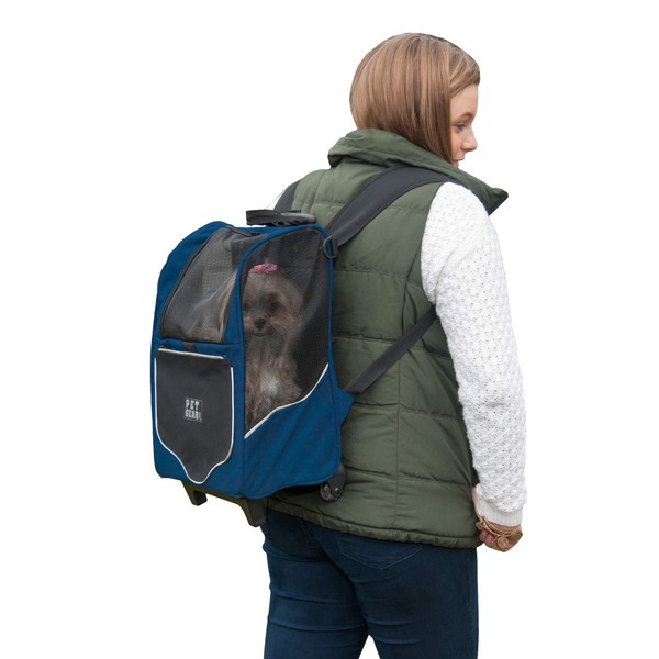 Pet Gear I-GO2 Roller Backpack, Travel Carrier, Car Seat for Cats/Dogs, Mesh Ventilation, Included Tether, Telescoping Handle, Storage Pouch, Regular Sport, Misty Blue