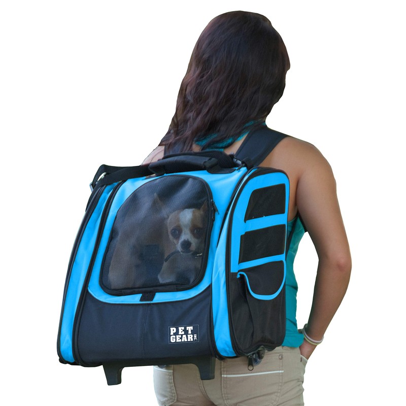 Pet Gear I-GO2 Traveler Roller Backpack, Travel Carrier, Car Seat for Cats/Dogs, Mesh Ventilation, Included Tether, Telescoping Handle, Storage Pouch, Sky