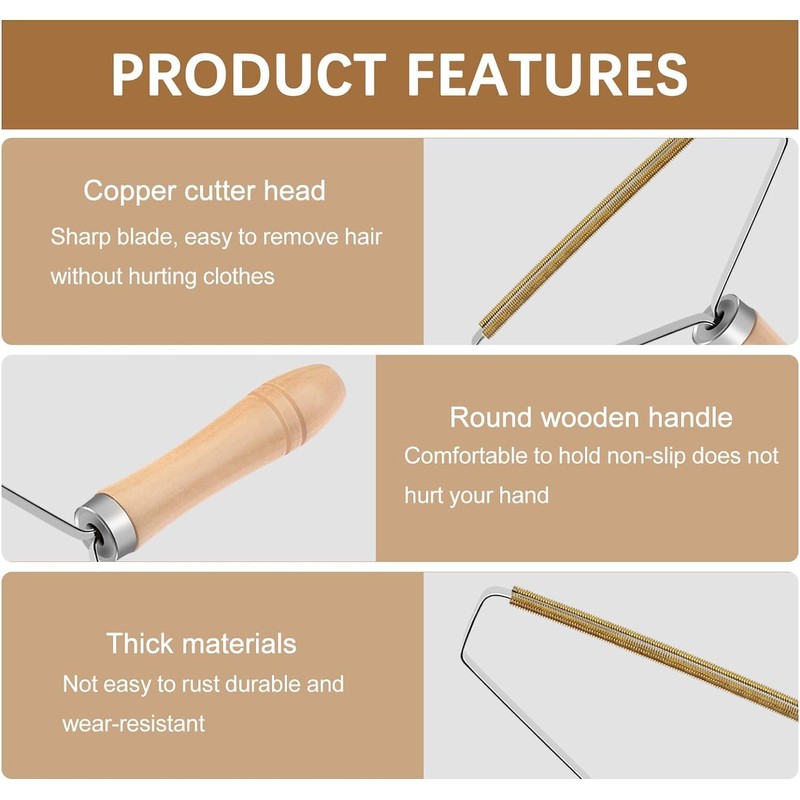 • Reusable & High Quality:This dog and cat hair remover is made of high quality ABS+TPR, sturdy and stainless, protects fabrics from scratches and won't scratch some fabrics without painfully removing hair or scratching your pet's skin. Each dehairing tool is made of the most suitable materials to ensure its durability and effectiveness, one of them comes with a solid brass head and made of beech wood handle. The dander razor has a rounded, thick edge that won't hurt your hands. It is smooth and durable and can be used for a long time.