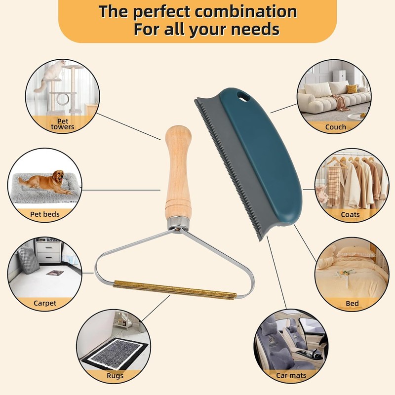 • Pet Hair Remover Combo Set:You can have 4 different new pet hair removal tools at once, different tools have slightly different cleaning results. Pure Wooden Handle Pet DeShedder, Silicone Y-Shape Hair Remover, Double Row Gear Type DeShedder. You can choose the appropriate brush according to the actual situation. The pet hair removal kit can be used to effectively remove hair, bristles and hairballs and dig deep into the most embedded hairs. Easily remove pet hair from carpets and furniture. Give your home a new look.
