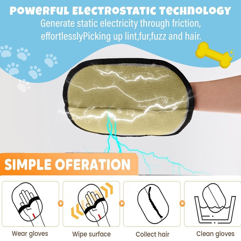 Pet Hair Remover Glove, Anti Static Efficient Double Sided Reusable Cat Dog G...