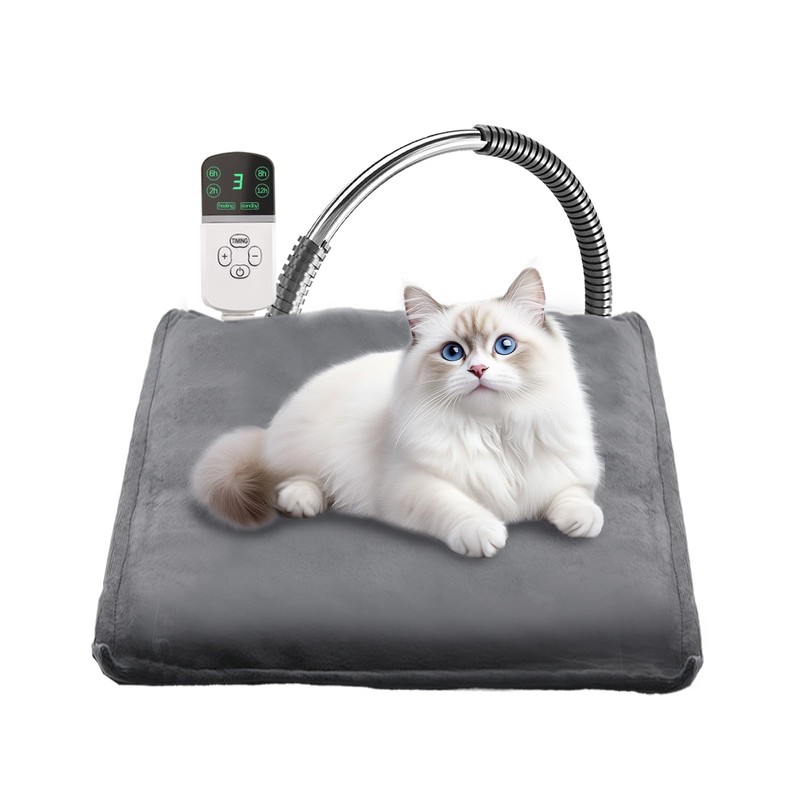 Pet Heating Pad , 35℃-50℃ Adjustable Temperature Kitten Dog Heat Pad with Timer, Waterproof Pet Blanket with 1.8m/5.9ft Chew Resistant Cord, Heat Resistant Mat with Auto Shut Off (Grey, 45 x 45CM)