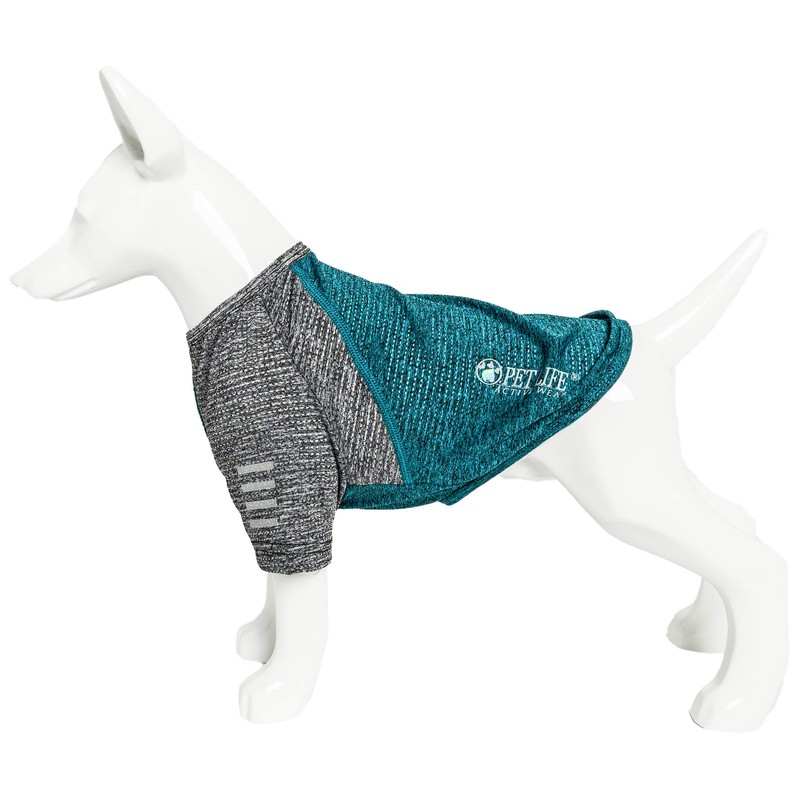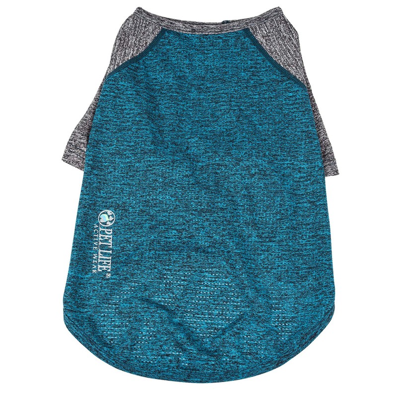 The Pet Life ACTIVE 'Hybrid' Two-Toned Performance T-shirt is crafted and Engineered with a specially formulated Ultra-Lightweight and well Ventilated elastic fabrics that enhance Performance, Mobility and Breathability. Features 4-Way Stretch Construction that moves better in every direction with a relaxed fit. Both infused fabrics feature a specially formulated Micro-fiber that contains perforated panels that offer surround ventilation. This soft-to-the- touch material almost feels like a secondary layer of flexible skin and feature Quick-Drying properties that both repels body moisture or sweat while offering Anti-Odor technology that assists with odor causing microbes. The Hybrid T-shirt is also UV Protectant against the suns harmful rays and fitted perfectly to help assist in containment of shredded hairs. Design Dual Reinforced stitched hemming at every seam for longevity and durability with a Pull-Over design for easy on and off access and Reflective-Taping for added night visibility. Machine Washable. This style is part of our Pet Life Active wear Collection. Available in Multiple Sizes and Colors. SIZING SPECIFICATIONS: In (Inches) "Back" Length is from Neck to Tail: * See image chart for sizing approximation. EXTRA SMALL: Back: 9.5" Chest: 13.5" Neck: 9.5" Sleeve: 6.5" SMALL: Back: 11.5" Chest: 16.5" Neck: 12.5" Sleeve: 7" MEDIUM: Back: 14.5" Chest: 20.5" Neck: 14" Sleeves: 7.5" LARGE: Back: 18.5" Chest: 25.5" Neck: 16.5" Sleeve: 8" EXTRA LARGE: Back: 21.5" Chest: 30.5" Neck: 19.5" Sleeve: 8.8".