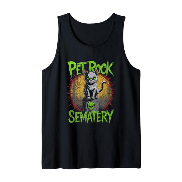 Pet Rock Creepy Cat on Skull Tombstone in Haunted Graveyard Tank Top