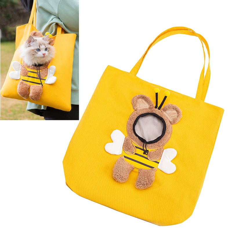Pet Shoulder Bag Breathable Adjustable Elastic Opening Cute Canvas Pet Carrying Bag for Puppy Cat Bee Large (Recommended Weight 0‑3kg / 0‑6.6lb Dog, 0‑4kg / 0‑8.8lb Cat)