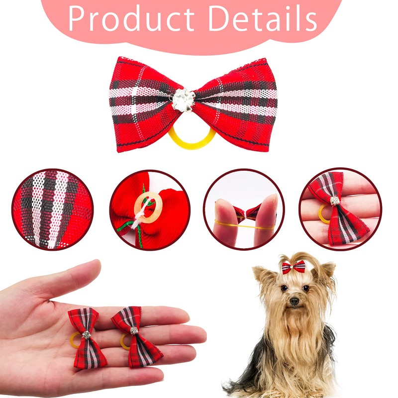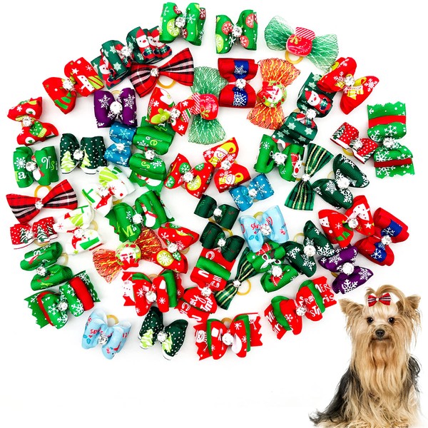 PET SHOW 50 lazos de Navidad para el pelo de perro con bandas de goma a granel para perros pequeños y medianos, cachorros, gatos, gatitos, conejos, disfraces de aseo con nudo superior, accesorios para el cabello