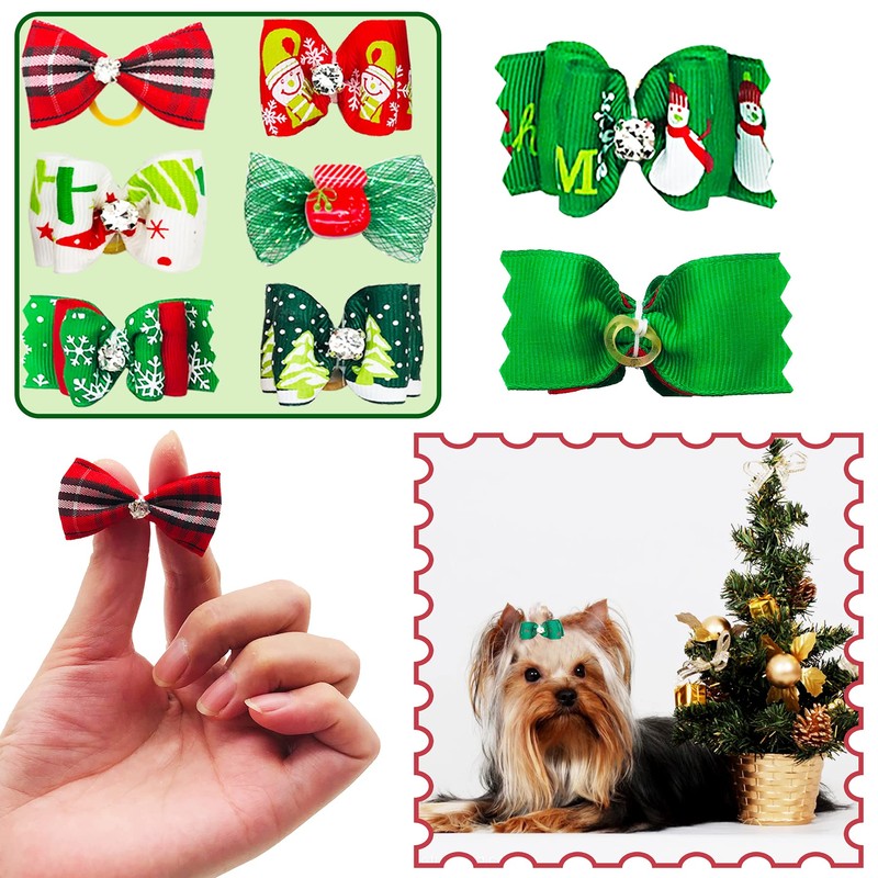 - Lazos para el pelo de perros pequeños, medianos y grandes, con bandas de goma, perfectos para las vacaciones de Navidad.
