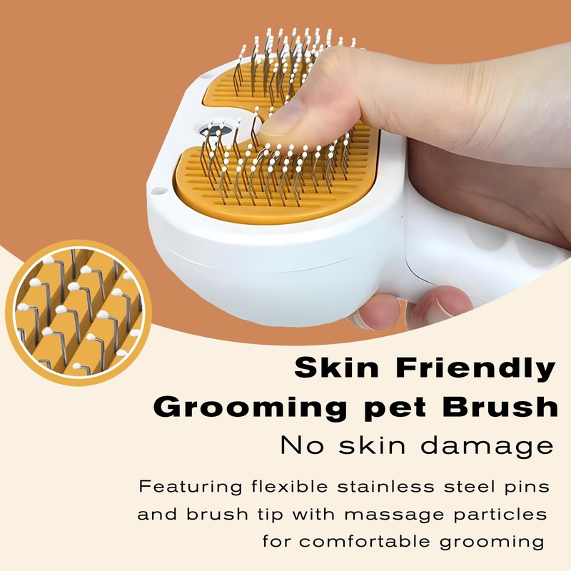 - 1. Multi-Function Pet Grooming Tool This pet steam brush combines de-shedding, steam spray, self-cleaning, and massage functions into one. It effectively removes dead skin and loose hair from your pet’s coat, reducing tangles and matting, and keeps their fur smooth and soft. Suitable for both long-haired and short-haired cats, it meets all your daily grooming needs, helping to reduce the frequency of baths while maintaining your pet’s skin and coat health.