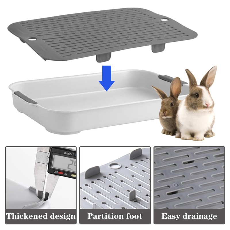 • Mesh design: Our rabbit cat litter box is equipped with a filter base and a suitable mesh design. When cleaning, you only need to remove the top and bottom layer and rinse the dirty items in the toilet with water.