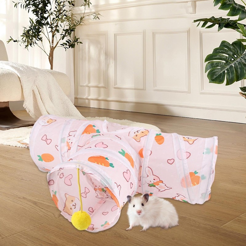 • Interactive Tunnel: Encourage playtime for your furry friend with an interactive Bunny Tunnel, featuring an elastic plush ball for stimulating interactions and satisfying your pet's curiosity