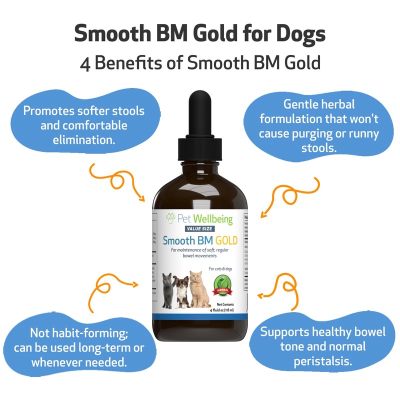 Pet Wellbeing Smooth BM Gold for Cats & Dogs - Vet-Formulated - Gentle Constipation Relief - Natural Herbal Supplement 4 oz (118 ml)
