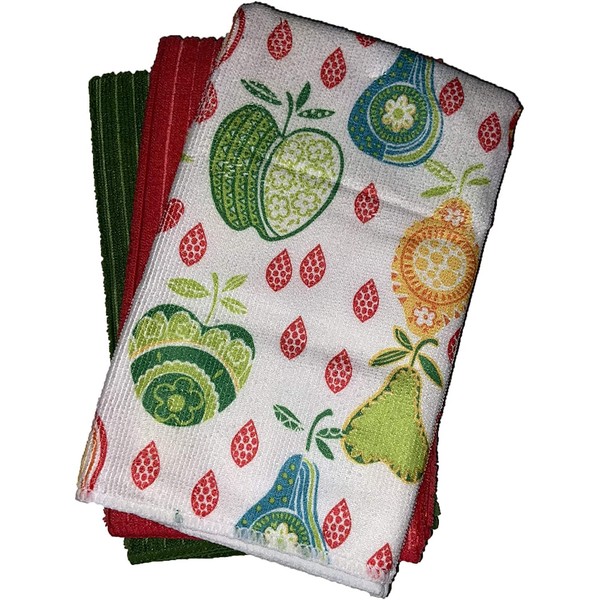 Petal Cliff Set of 6, Apple and Pear Fruit Design Microfiber Kitchen Towels/Bar Mop, Ultra-Absorbent & Fast Drying Size : 16" x 19".