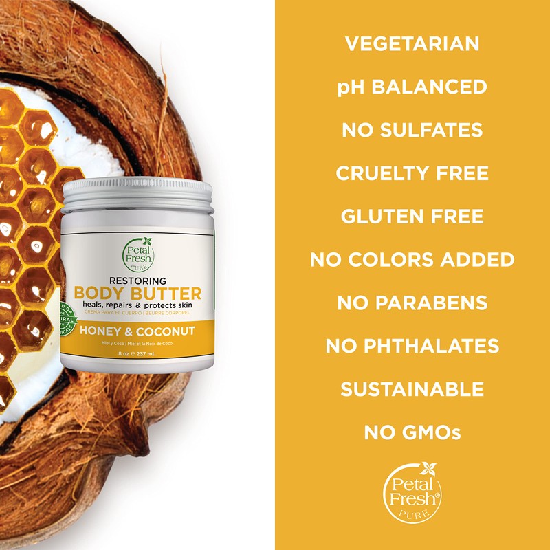 Petal Fresh Petal Fresh Pure, Restoring Body Butter, Heals, Repairs & Protects Skin with Honey & Coconut Oil, 8 Fl oz