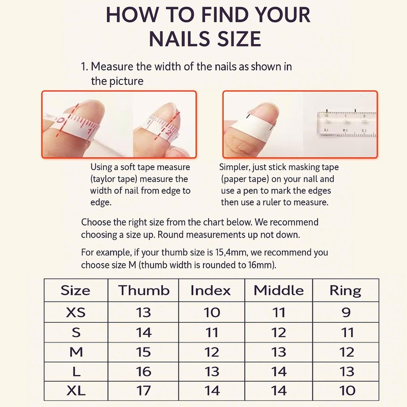 • Easy to Remove, Gentle on Your Natural Nails: When you’re ready for a change, just soak your hands in warm water for a few minutes and gently lift them off. No damage, no drama — just beautiful nails when you want them, and healthy nails underneath.
