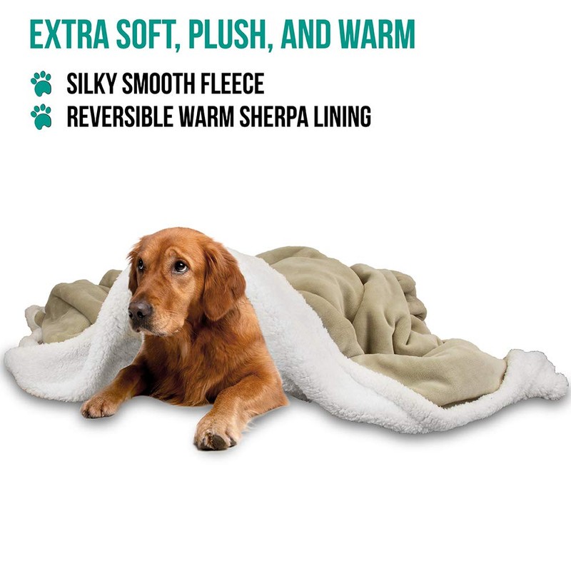 - PREMIUM MICROFIBER SHERPA FLEECE - Thick and durable pet blanket made of layered reversible warm sherpa and silky soft fleece with 460 GSM microfiber polyester.