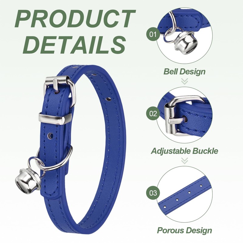 - Material: PU Leather, Metal Buckle; Color: Navy; Size: 25 x 1 cm / 9.8 x 0.4 Inch (L x W); Neck: 14 to 20 cm / 5.5 to 7.9 Inch; Weight: 10g / 0.02 lbs; Packing List: 1 Pcs x Pet Collar with Bell and Adjustable Buckle