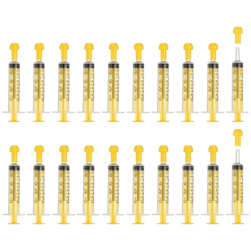 PETAXCELL Feeding Syringes with Cap, Plastic Syringes for Liquid Pet Feeding Measuring Tool No Needle 5ml, (Yellow, 20 Pcs), Intended for Dog / Cat / Rabbits / Small Animal / Scientific Lab