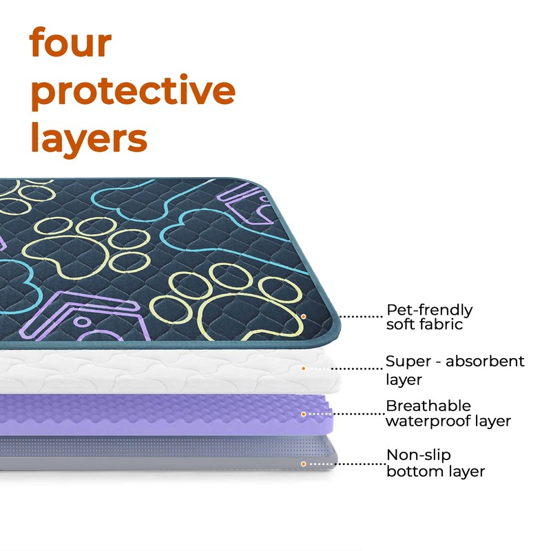 - 💦Versatile Use: Your washable puppy pad isn’t just for potty training! Whether you need a reliable solution during travel, whelping, or as extra protection for your furniture, your 100% waterproof dog mat is up for the task. One product, endless uses!