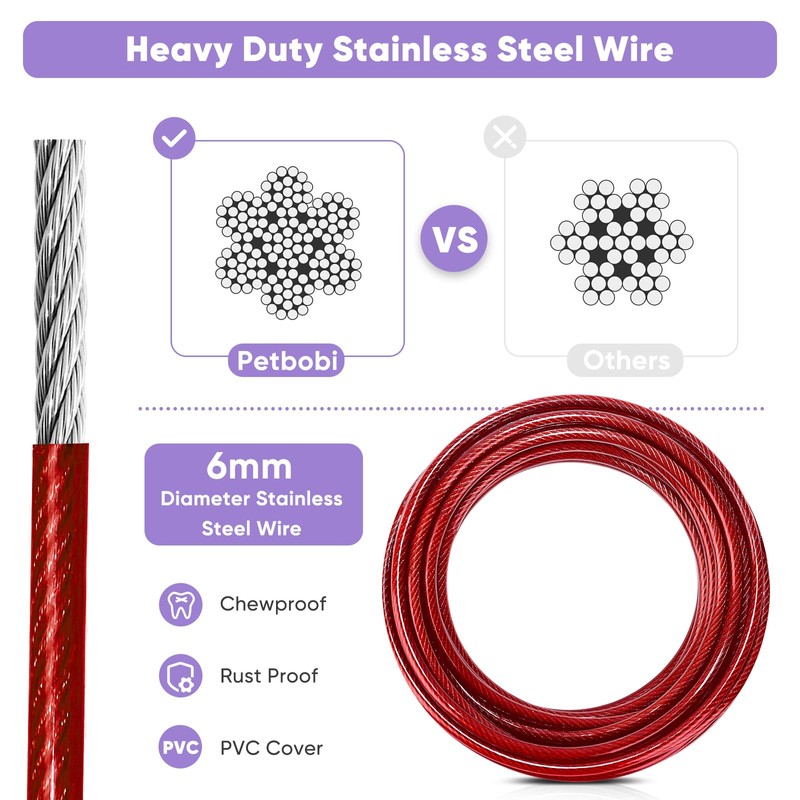 Petbobi Heavy-Duty Dog Tie-Out Cable - 30FT Extra Strong Wire Cable for Large Pets Up to 300Lbs, Rust Proof Dogs Leash with Carabiners and 360° Swivel, Pet Leads for Yard Camping Outside, Red