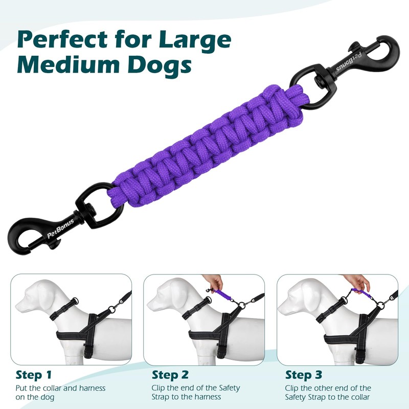 - Durable and Strong : This collar to leash backup safety clip are made of high quality polyester fiber, reinforced stitching to make it more strong