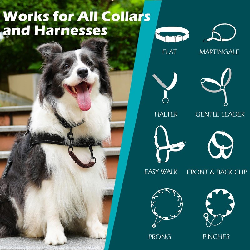 - Fit All Collar and Harness: The prong collar backup clips for dog harnesses, prong collars, gentle leader, flat buckles, easy walk harnesses, martingale collars, pinch collars, and others. keep your dog safe no matter what collar they are wearing