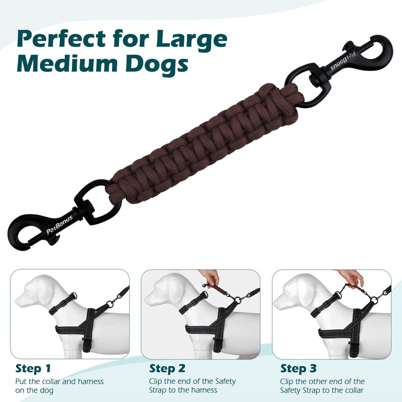 - Durable and Strong : This collar to leash backup safety clip are made of high quality polyester fiber, reinforced stitching to make it more strong