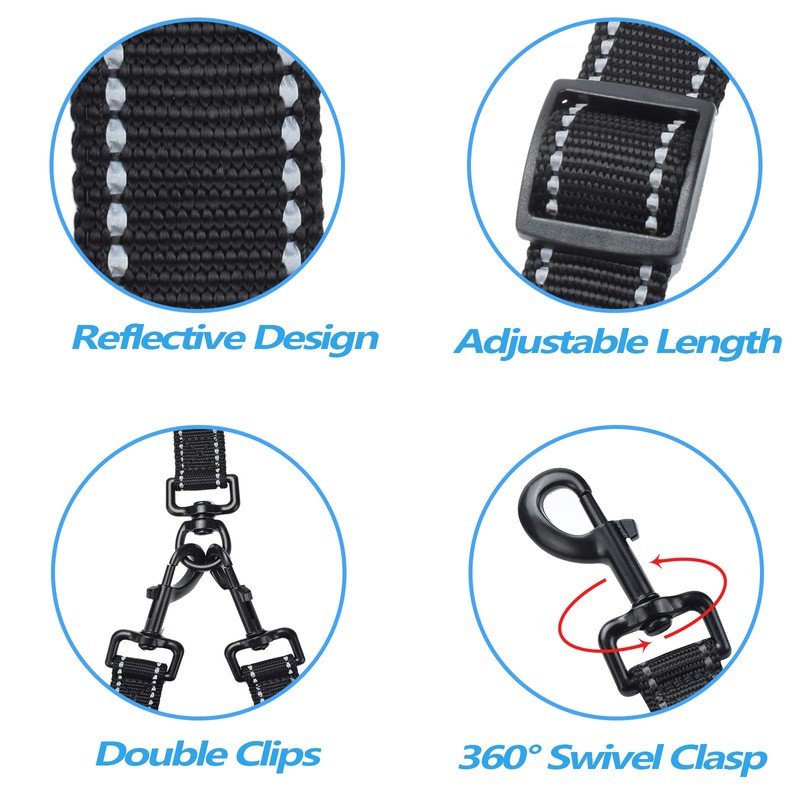 - Reflective Stitching: Reflective thread stitched along the entire dog walking leash enhances the visibility at night. Ensure you and your dogs' safety at night walking. PetBonus 2 dog leash has a perfectly stitched double nylon webbing that makes the lead stronger than most other leads.