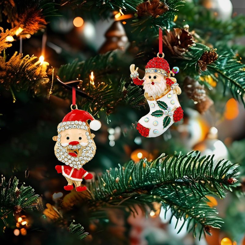 - 【Material】:The Santa ornaments are composed of premium metal and rhinestone. Their lightweight nature makes them a perfect choice for adorning Christmas trees.