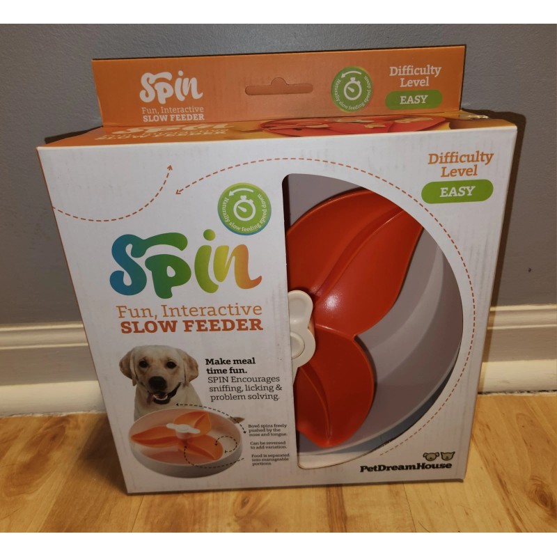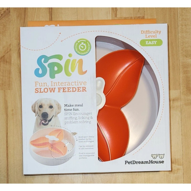 Petdreamhouse NEW! Spin Fun Interactive Slow Feeder Bowl for Dogs Makes Meal Time Fun. Orange