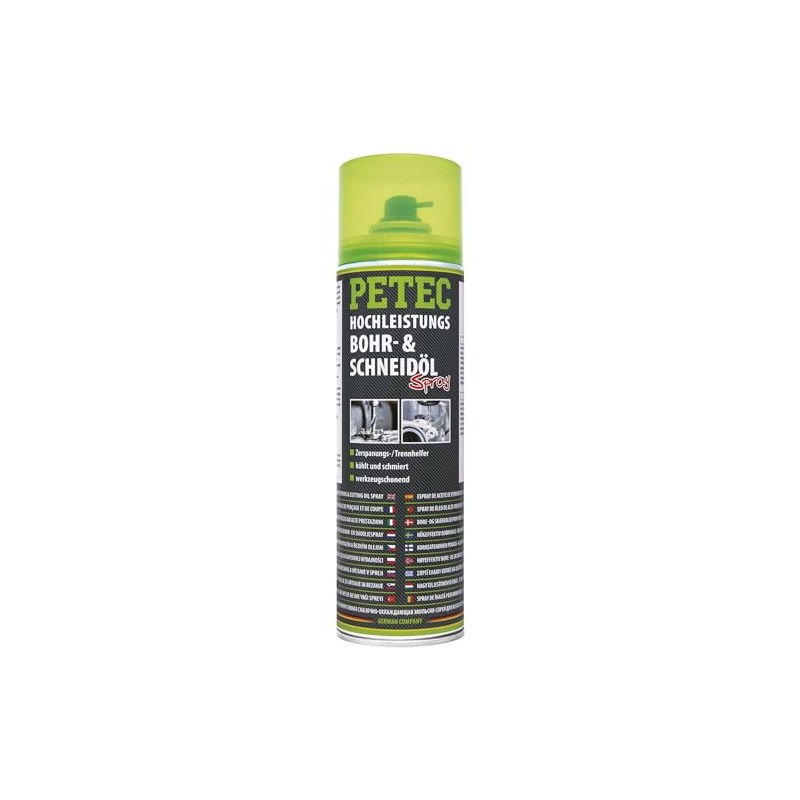 Petec Drilling cutting oil 500 ml spray. The Petec drilling cutting oil 500 ml spray activates and simplifies all processing and separation processes such as thread cutting, drilling, turning, reaming, sawing, scraping, punching and milling, for applications in the field of automotive, shipping, construction and agricultural machinery, as well as industry and crafts. Special features: cutting aid, cools and lubricates, tool friendly, for all materials. 1888888Good adhesion, no slipping of drilling tools, extends the life of the tools