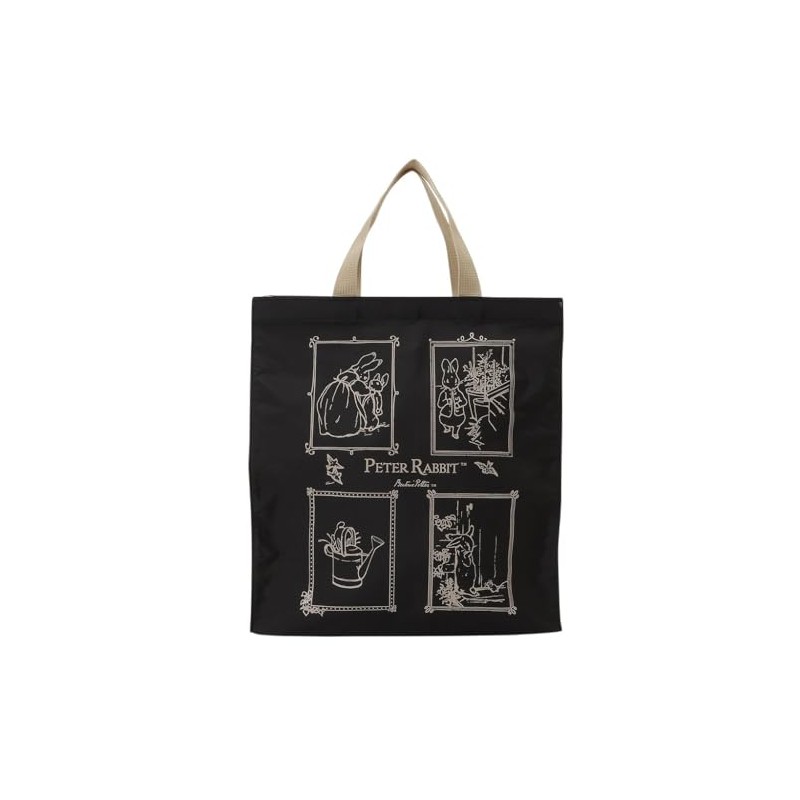 PETER RABBIT(TM) 2410-0647-03 Square Tote Bag (M) Handbag, Lightweight, A4, Shopping, with Bottom Plate, Square Subbag, Practice, Rabbit, Black