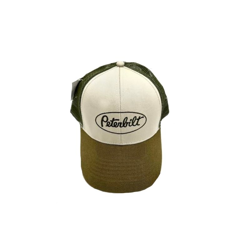 PETERBILT Motors Trucks Olive Green & Tan Brown Snapback Mesh Trucker Cap/Hat