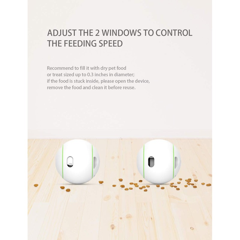 5.Recommend to fill it with dry pet food or treat sized up to 0.3 inches in diameter; if the food is stuck inside, please open the device, remove the food and clean it before reuse