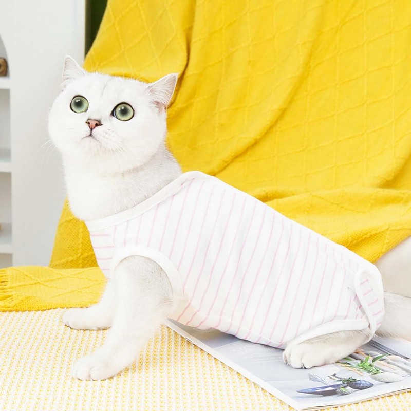 PetGround Cat Postoperative Clothes Female Male Easy to Put On Velcro Spring Summer Thin Simple Cute Soft Postoperative Wear Alternative to Elizabeth Color (Pink, S)