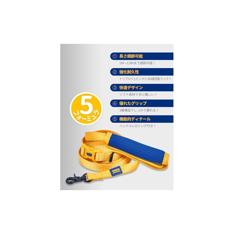Pethroom Pesroom Dog Leash Comfort Yellow 2.0 Anti-Slip Mesh Handle Triple Webbing Adjustable Length 1.0-1.8M for Walking Training