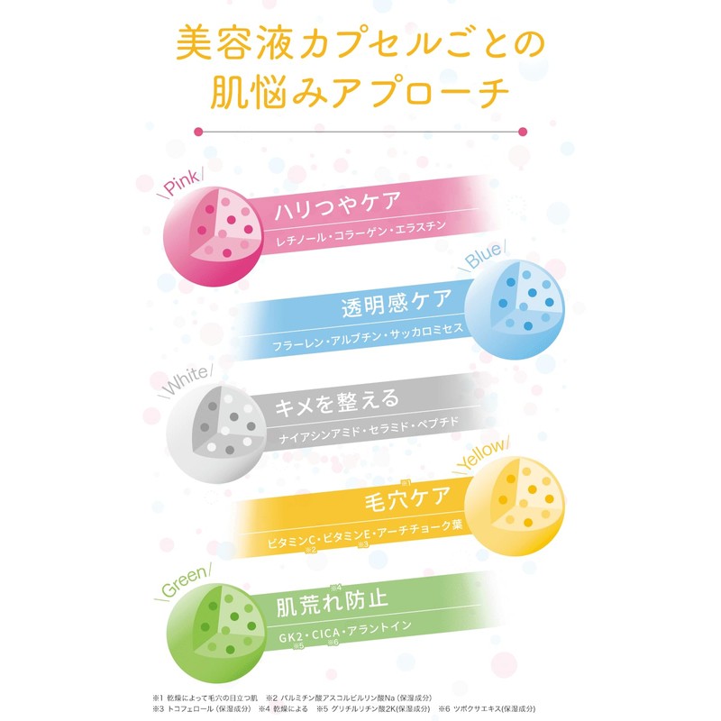 - (An approach to 3 different skin problems) 3-color capsules approach 3 skin problems. Choose the one that fits your skin from 5 types