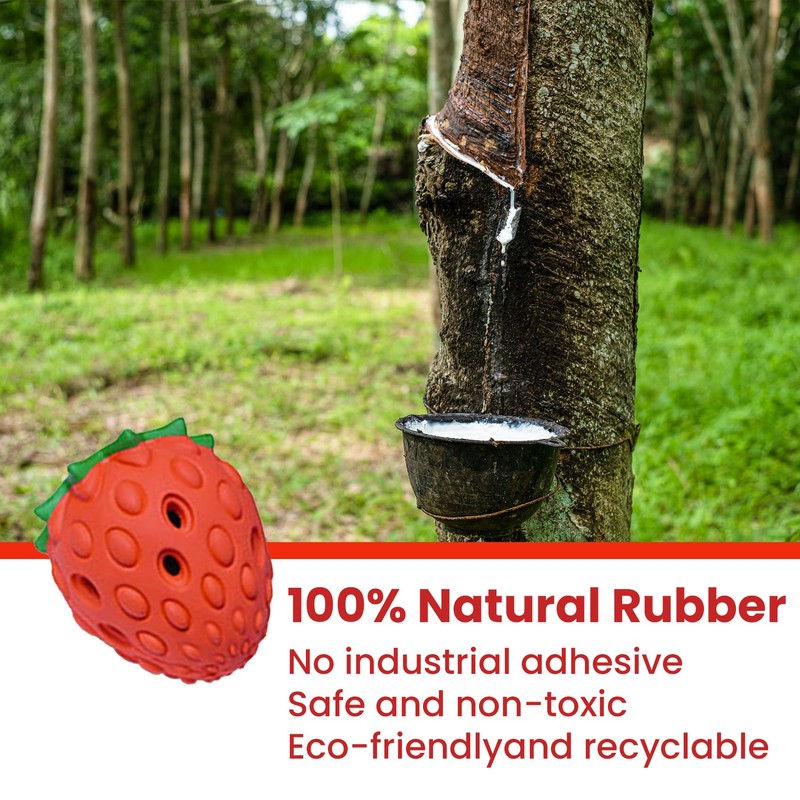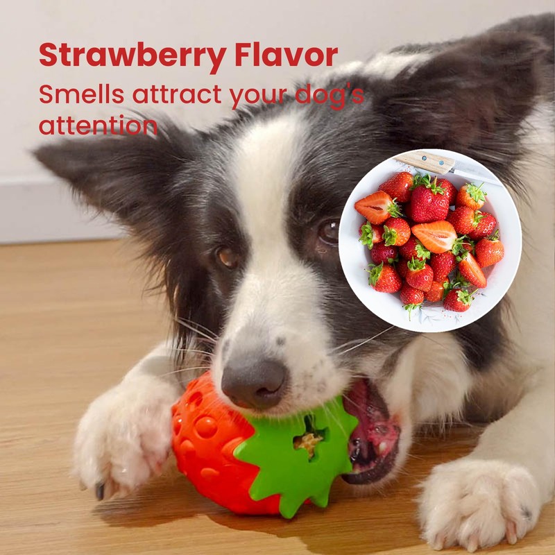 - Natural Durable Rubber: Crafted from thick, food-grade rubber, this toy is built to last while being non-toxic and gentle on your dog's gums. Enhanced with a delightful strawberry scent, it’s designed to captivate your dog’s interest and keep them engaged.
