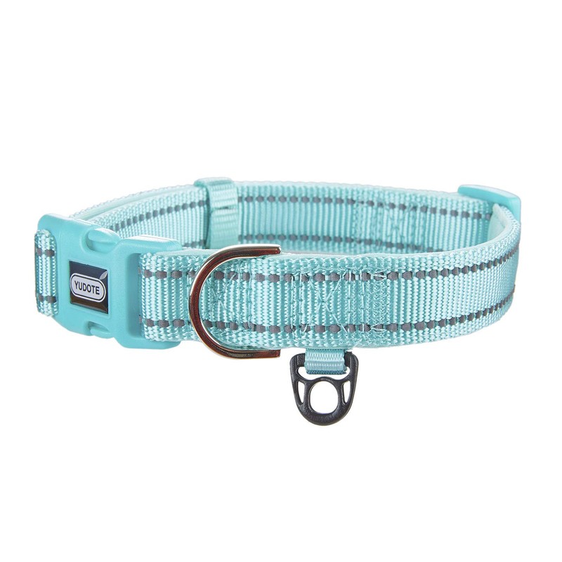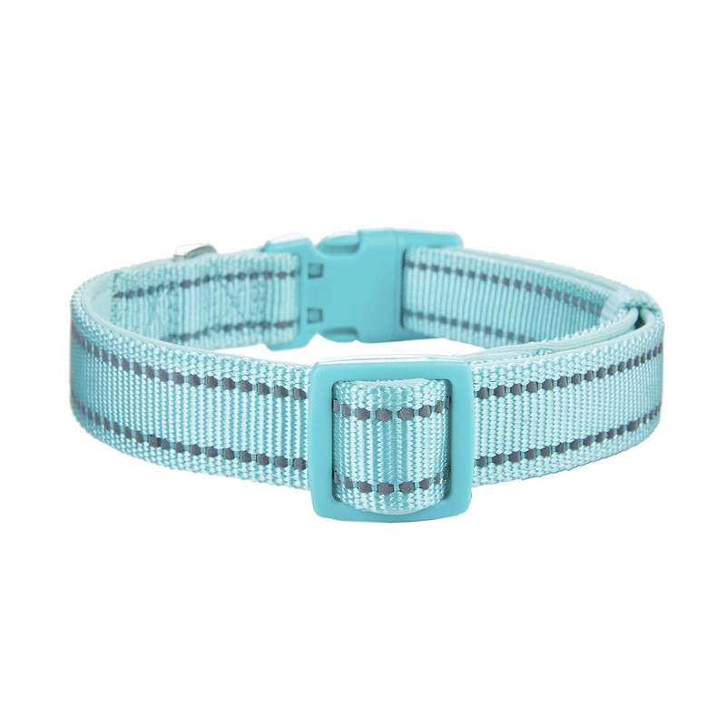 Petiry Reflective Nylon Dog Collar with Breathable Neoprene Padding,Adjustable for Medium Dogs.(Neck 13"-18.9",Teal)
