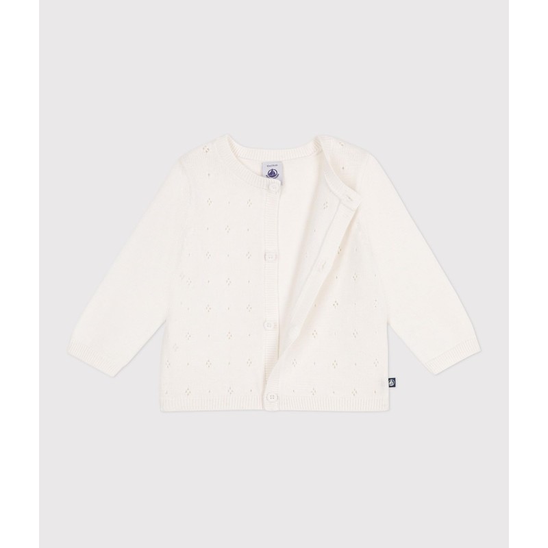 Petit Bateau A0CEP Cotton Knit Cardigan, white (off-white)