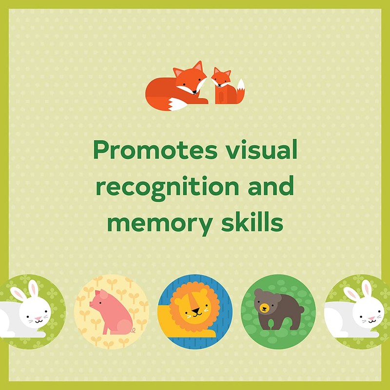 - PLAY AND LEARN – Includes 24 die-cut cards that make 12 matches. Designed with little hands in mind, this sturdy card-matching game features playful illustrations. Boost visual recognition and memory skills while playing.