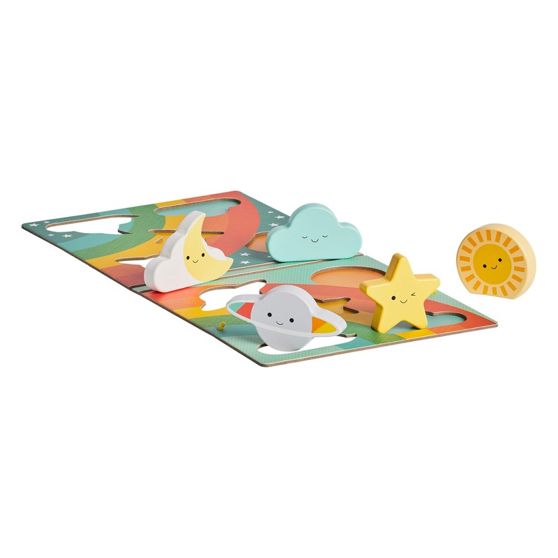 - The Rainbow puzzle features 5 chubby pieces that nestle neatly into their puzzle spaces or stand alone for imaginative play