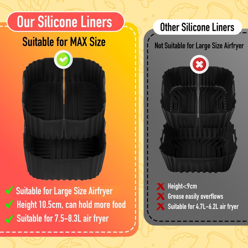 • 【Breite Kompatibilität】-Unser air fryer Zubehör für Silikoneinlagen ist nicht nur mit air fryer kompatibel, diese Silikoneinlagen funktionieren auch in Mikrowellen, Dampfgarern und Backöfen und erfüllen verschiedene Kochanforderungen.