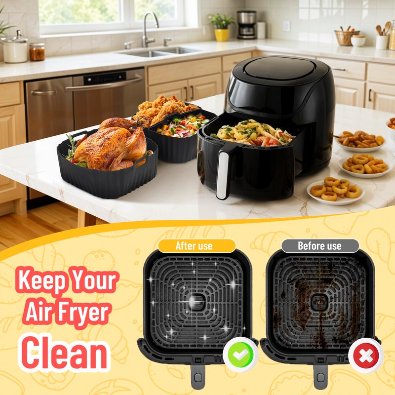 • 【Lebensmittelechtes Silikonmaterial】-Unsere Silikoneinsatz für die air fryer besteht aus hochwertigem, ungiftigem, lebensmittelechtem Silikon. Diese wiederverwendbaren Einlagen ersetzen Einweg-Backpapier und bieten eine kostengünstige Lösung.