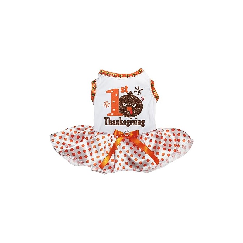 Petitebelle 1st Turkey Thanksgiving Puppy Dog Dress (Weiß/Punkte, Größe S)