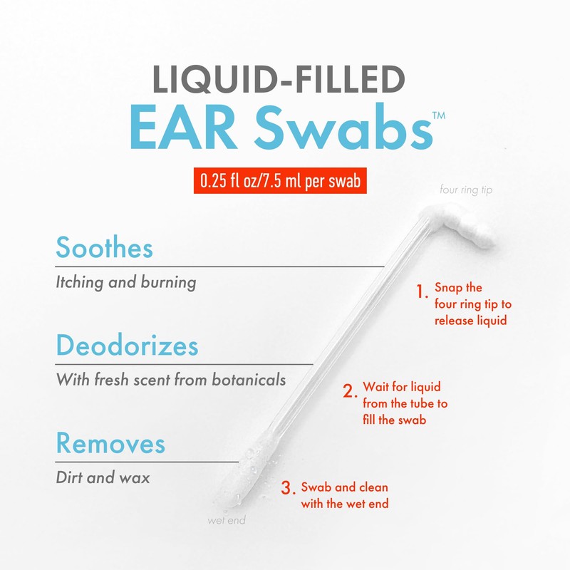- EASY TO USE - Tear open outer wrapper. Hold four ring tip end upright and snap tip to release liquid into cotton end of swab. Gently rub cotton swab around pet's ear until clean. Do not force into ear canal. Use a new swab for each ear.