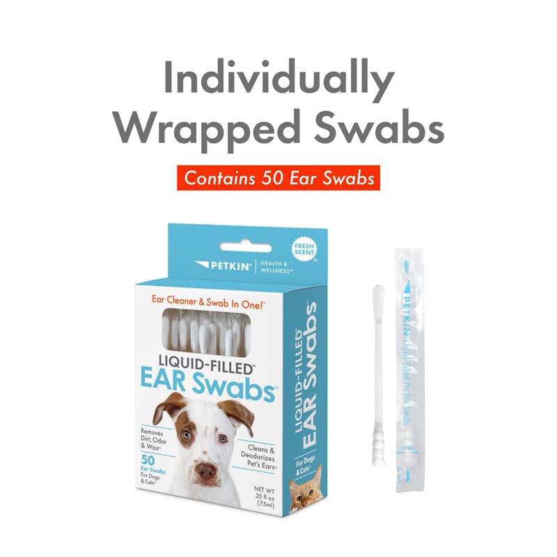 - PETKIN EAR SWABS FOR PETS - Each Petkin Liquid-Filled Ear Swab removes dirt, odor, and wax, soothes itching, and provides a simple way to keep your pet's ears clean, healthy, and smelling fresh.
