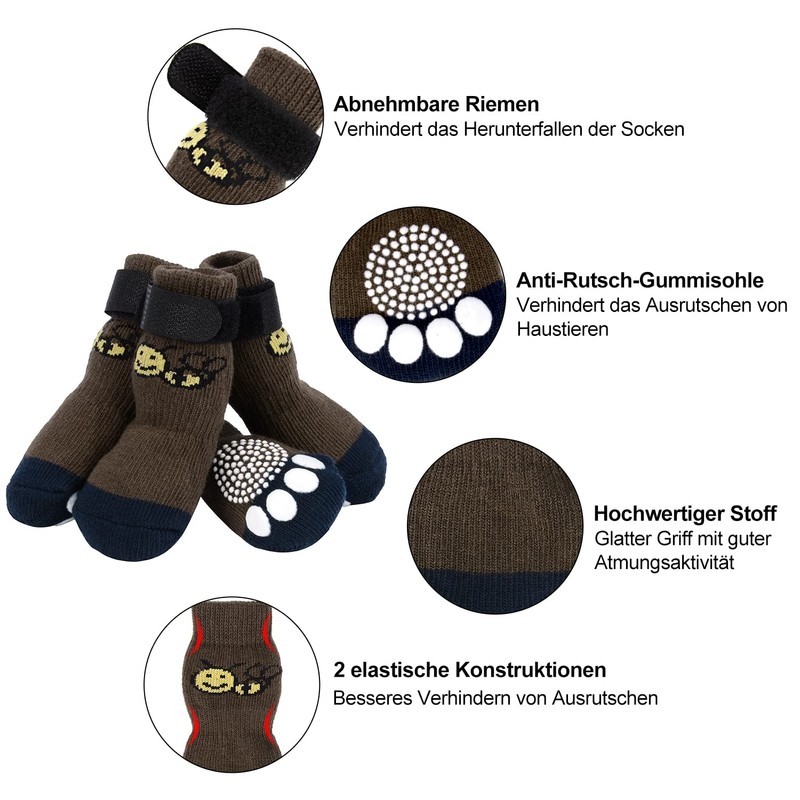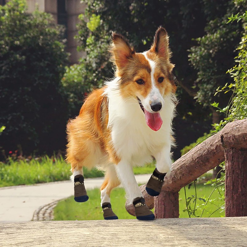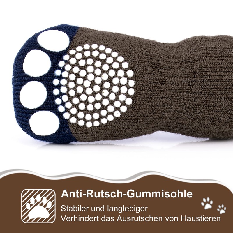 PETLOFT Non-Slip Dog Socks, Pack of 4 Indoor Non-Slip Dog Socks with Adjustable Removable Attachment Strap for Small Medium Dogs Cats Puppies Old Pets (XL, Brown Paw)